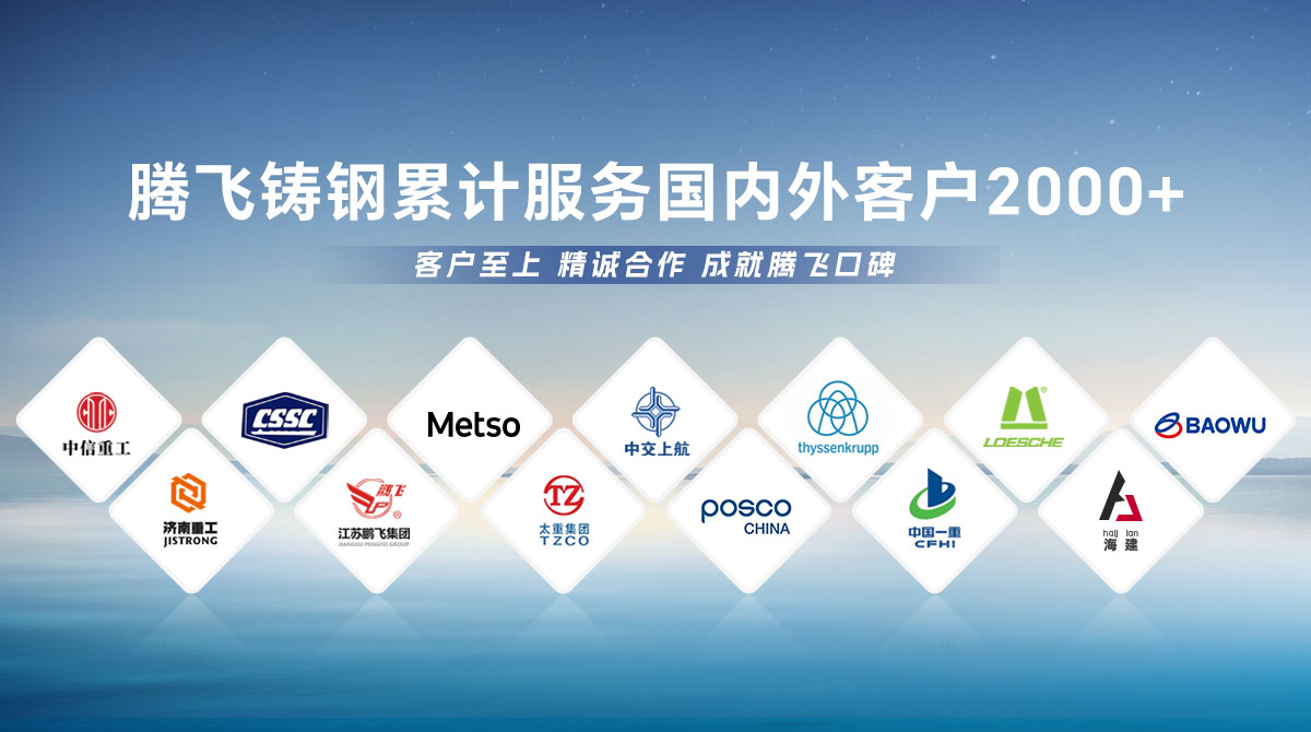 騰飛鑄鋼成立于2006年,位于全國(guó)鑄造基地河南省新鄉(xiāng)市,擁有員工300余人,是一家從事150噸以下碳鋼、低合金鋼、不銹鋼鑄鋼件研發(fā)、制造、服務(wù)為一體的國(guó)家高新技術(shù)企業(yè)?! 」就ㄟ^(guò)了ISO9001國(guó)際質(zhì)量管理體系認(rèn)證,擁有2項(xiàng)發(fā)明專(zhuān) 利,2項(xiàng)河南省科技成果、25項(xiàng)實(shí)用新型技術(shù),通過(guò)了“環(huán)???jī)效評(píng)級(jí)B級(jí)企業(yè)”驗(yàn)收,先后榮獲“河南省鑄造行業(yè)綠色發(fā)展企業(yè)”、 “河南省科技型中小企業(yè)”、“河南省專(zhuān)精特新中小企業(yè)”等榮譽(yù)稱(chēng)號(hào)?! 」緭碛?臺(tái)25噸電爐,4臺(tái)大型天燃?xì)鉄崽幚頎t、10米回旋自動(dòng)拋丸機(jī)一臺(tái), φ8m數(shù)控立車(chē)、φ10m數(shù)控滾齒機(jī)等各類(lèi)高精裝備100余臺(tái)套,年產(chǎn)能3萬(wàn)余噸,能為客戶(hù)提供從產(chǎn)品設(shè)計(jì)、木模加工、大型鑄造、大型加工一站式服務(wù),產(chǎn)品廣泛應(yīng)用于建材、冶金、鍛壓、冶金、水工、路橋、化工等多個(gè)重型行業(yè)。  長(zhǎng)期服務(wù)于中信重工、中船重工、美卓、上海中交、萊歇、寶武、濟(jì)南重工等全球知名企業(yè),在行業(yè)內(nèi)擁有較高的市場(chǎng)知名度和美譽(yù)度。